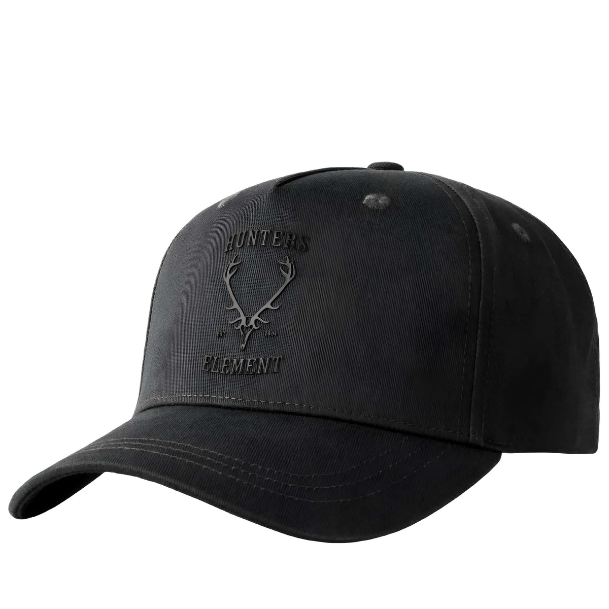 5-panel snapback with a curved peak and custom Hunters Element logo.