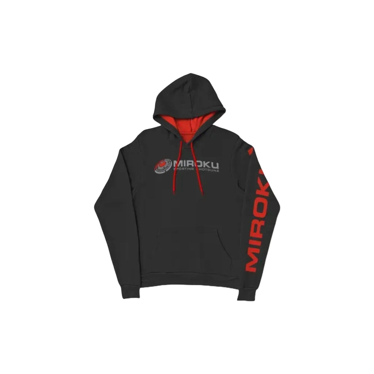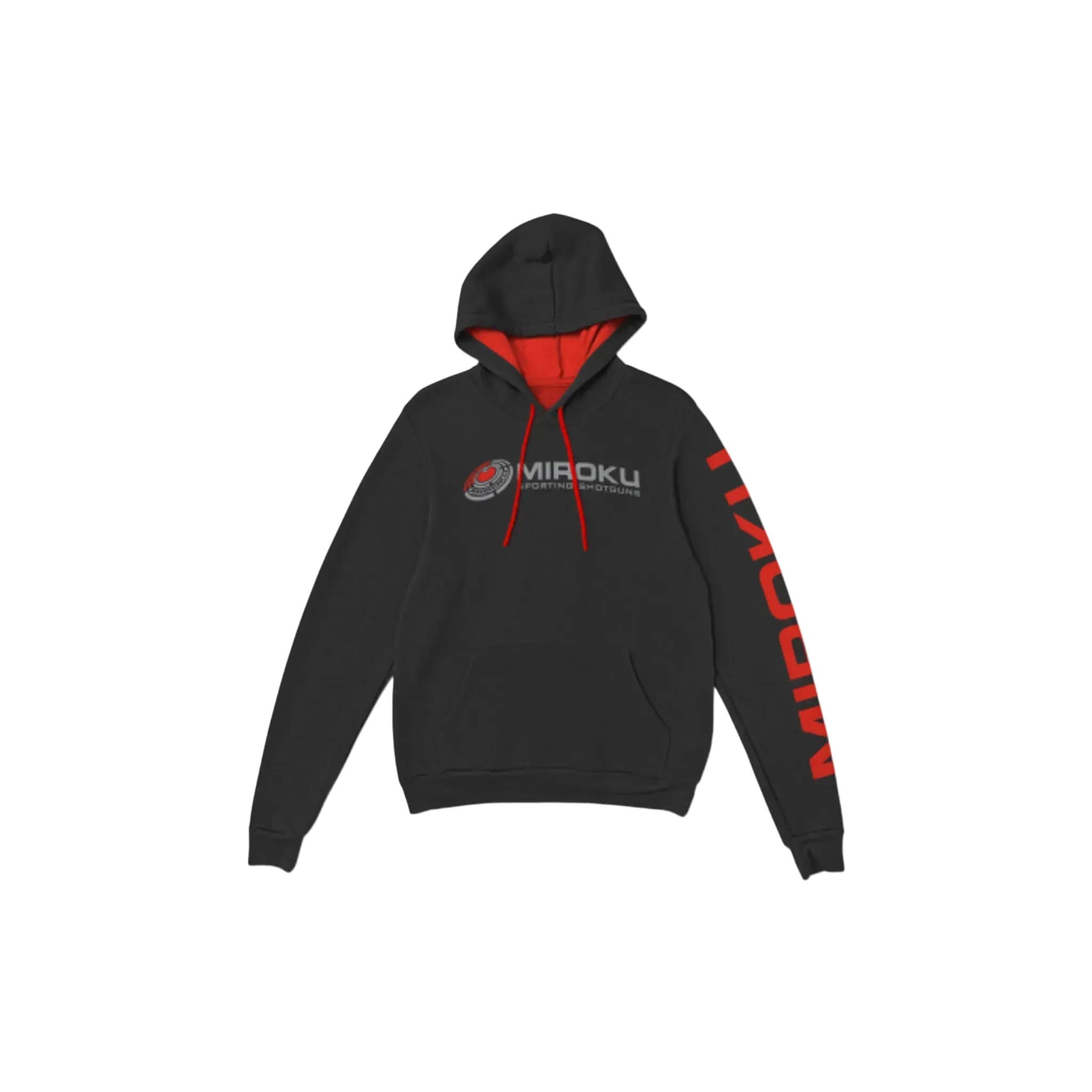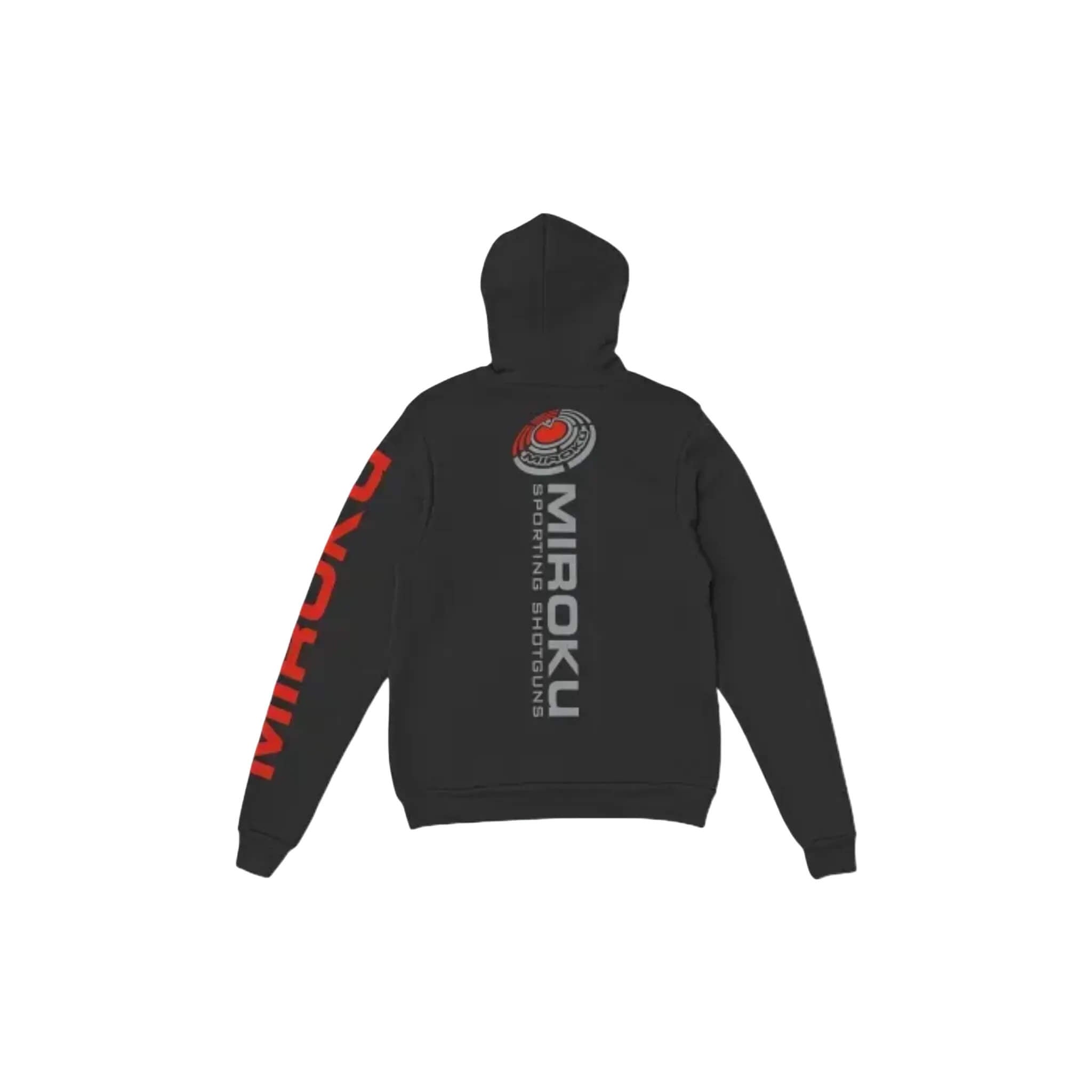 Featuring bold MIROKU logos front and back, along with a vertical sleeve print for maximum impact. Inside, the vivid red hood lining and matching drawcords add contrast and flair.