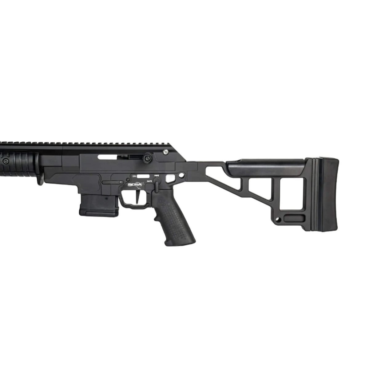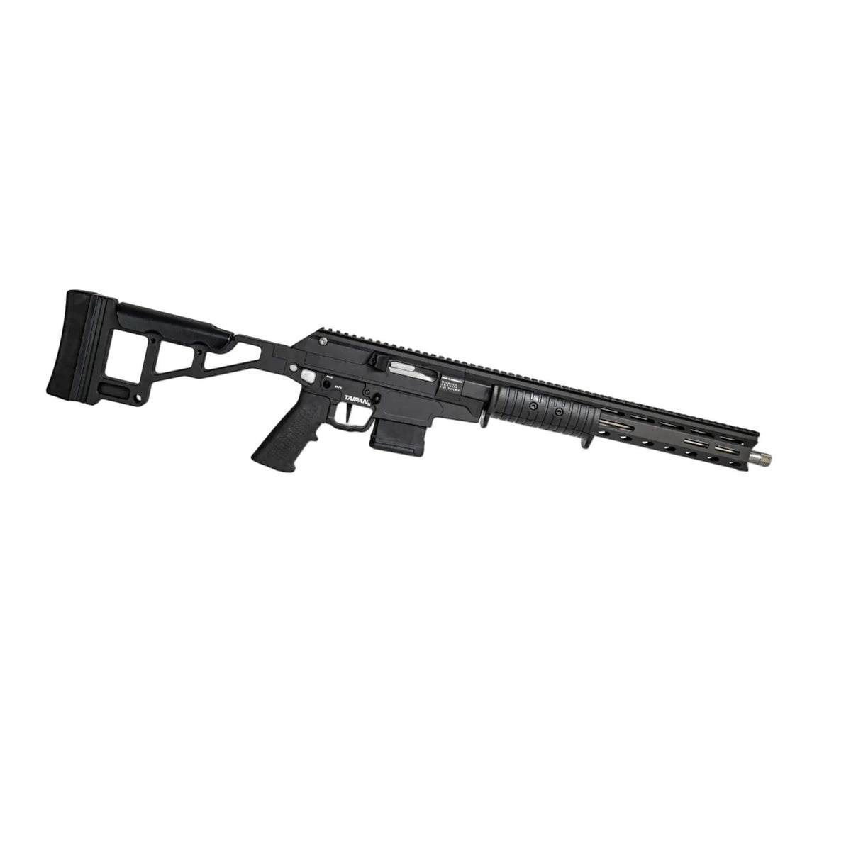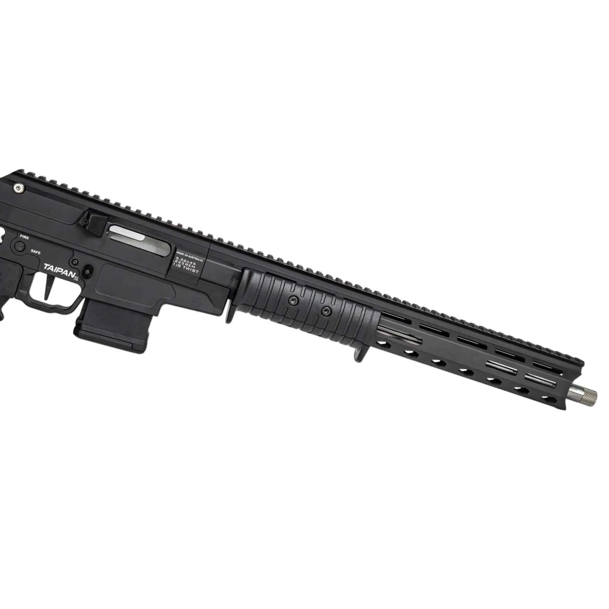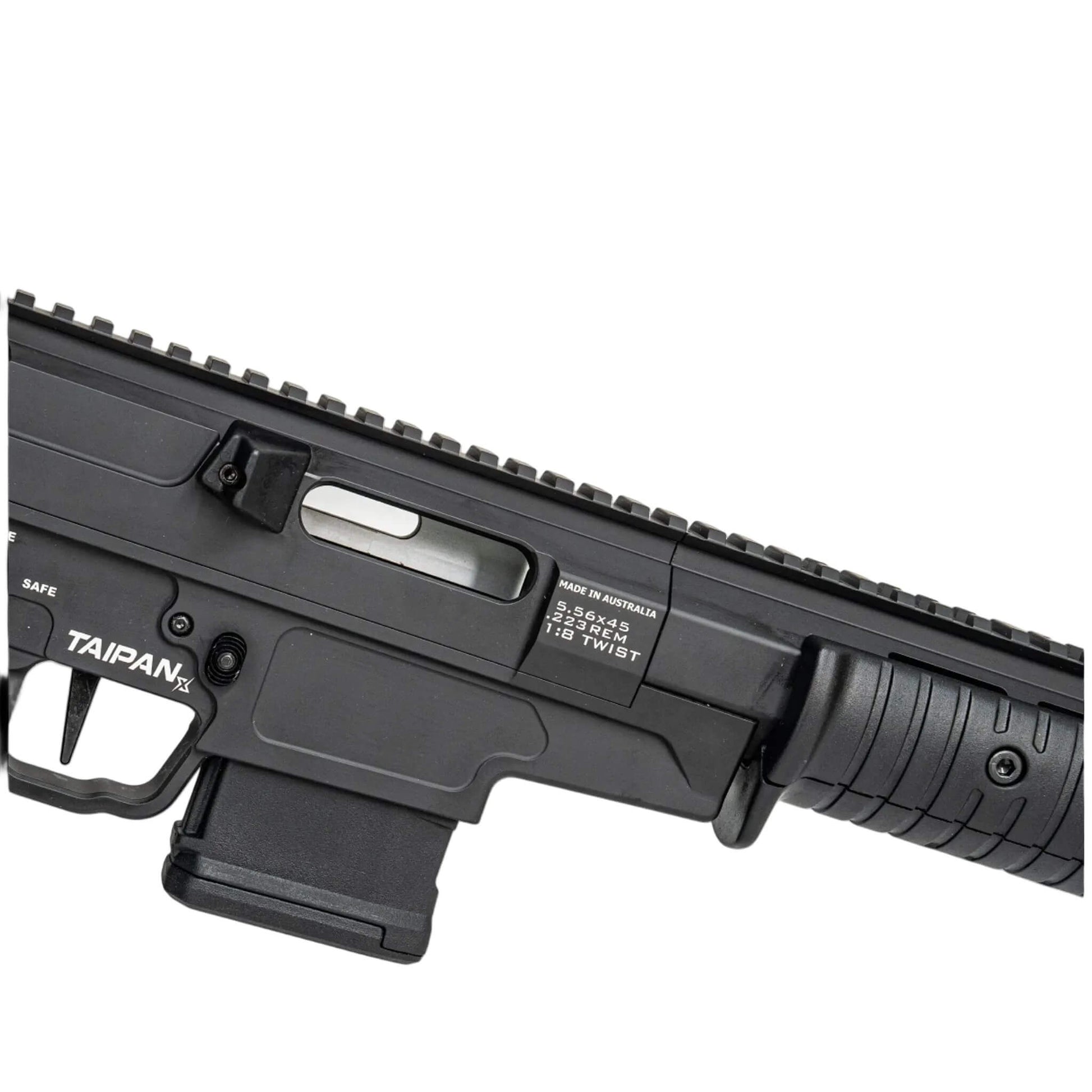 Enhanced ejected case control with the replaceable glass-filled nylon case deflector on the Taipan X. This practical feature improves case management while offering essential protection for both the rifle and shooter.