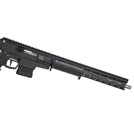 Experience reliability and reduced fatigue with the enclosed handguard action spring on the Taipan X. This innovative feature ensures consistent and dependable rifle cycling during pump action operation. Moreover, it alleviates shooter fatigue. Additionally, the consistent forward motion of the bolt carrier enhances magazine-fed ammunition feeding for uninterrupted performance.