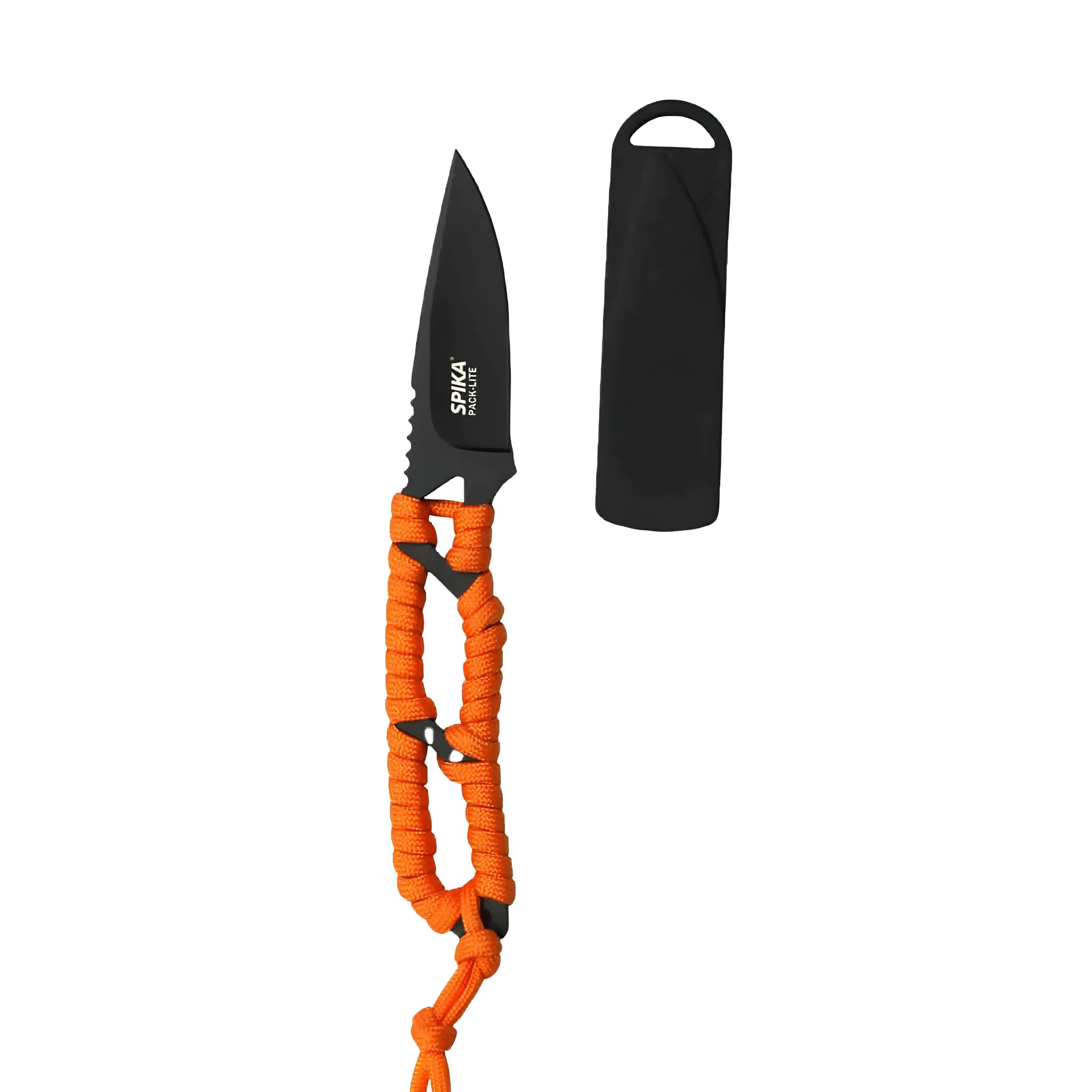 Spika Pack Light Black Fixed Blade Knife With Orange Paracord