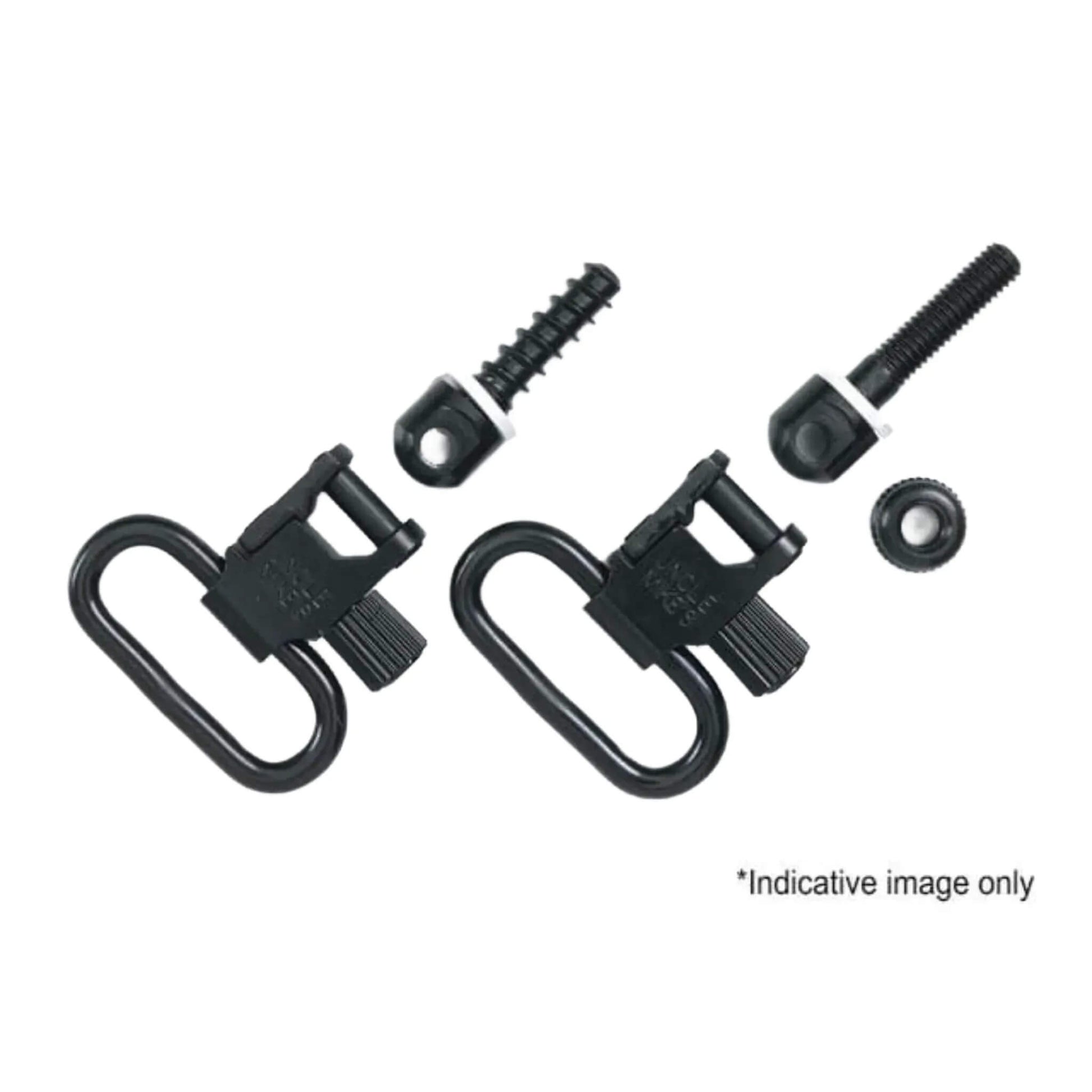 Machine screw fore-end base, wood screw rear base. Replaces many factory non-detachable swivels. 1in. and 1 1/4in. sizes.