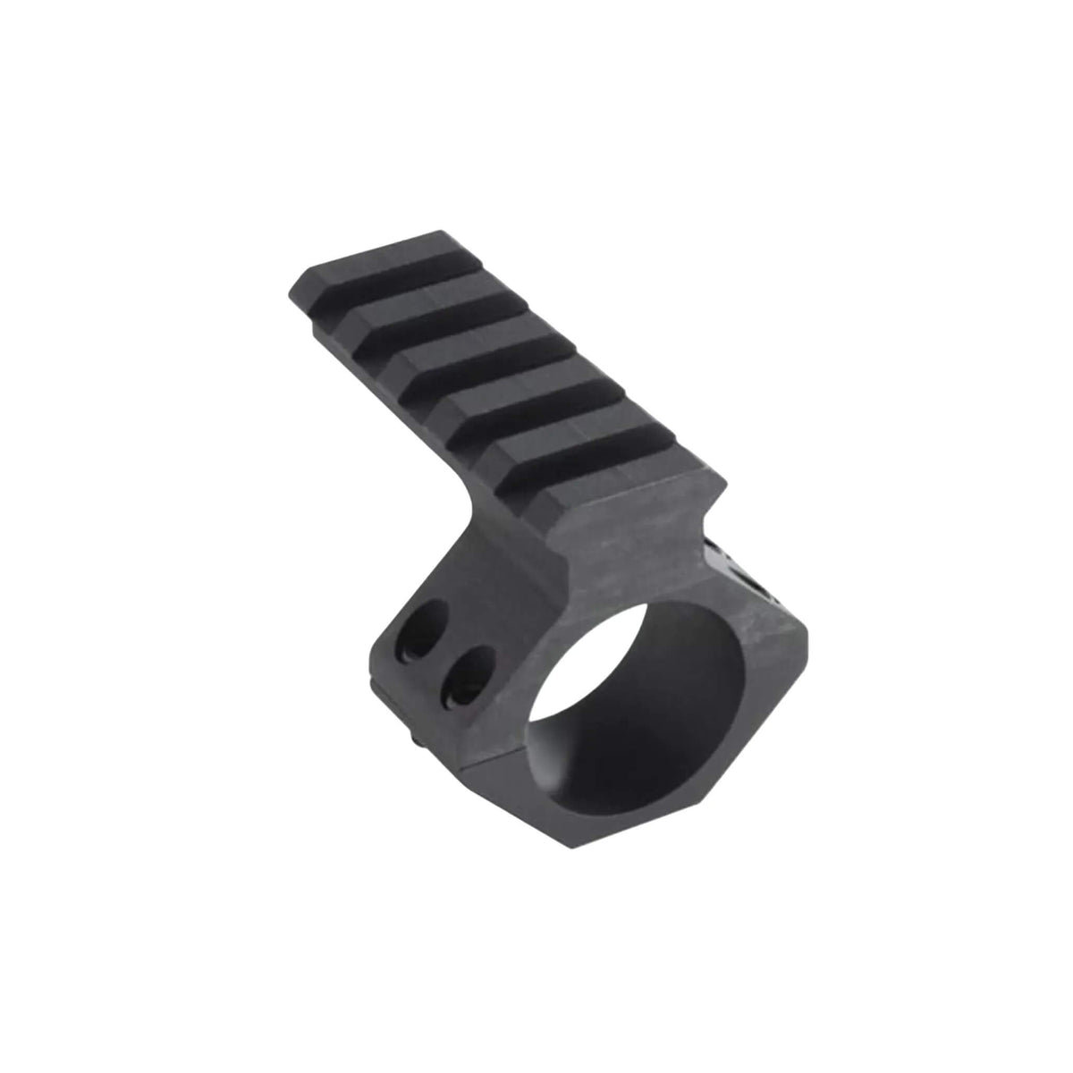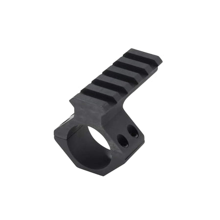 The four-hole scope ring and attached Picatinny rail are machined from a single piece of 6061-T6 aluminium and anodized for enhanced corrosion resistance.
